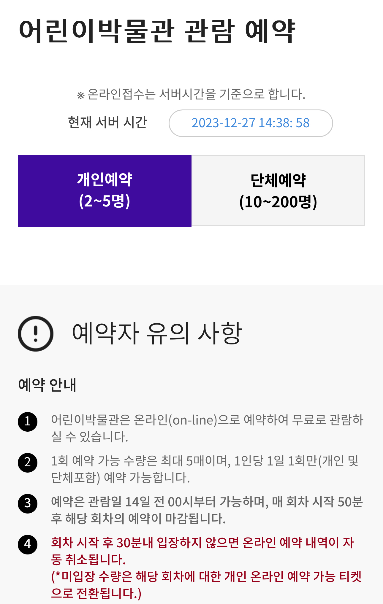 어린이박물관을 이용하려면 사전예약을 통해서만 입장할수있습니다.