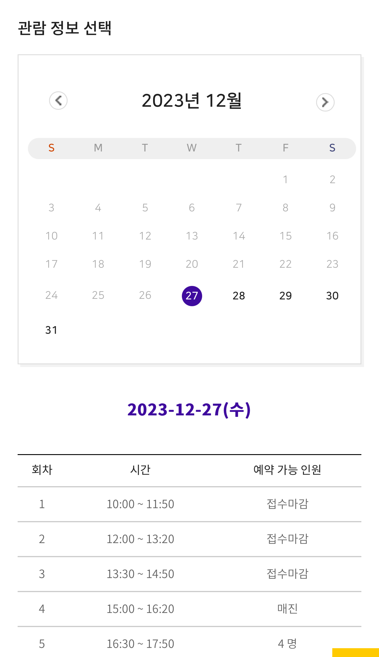 1회최대 5매이며 회차시작후 30분내로입장해야합니다.