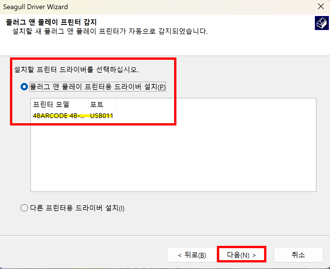 5. 플러그 앤 플레이 프린터 감시 프린터용 드라이버 설치
