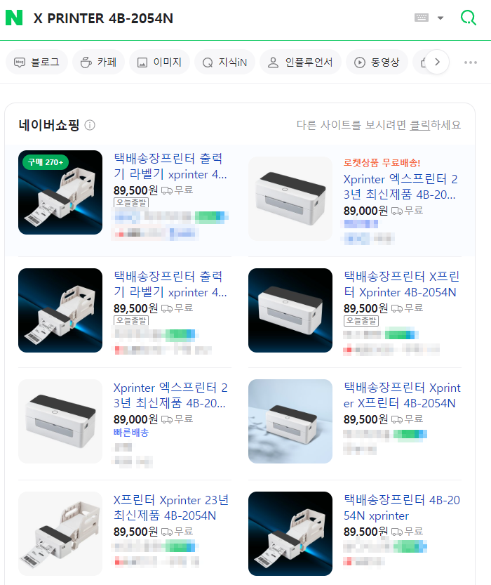 x printer 4B-2054N 검색을 할 경우 이렇게 많은 판매처에서 나오게 됩니다.