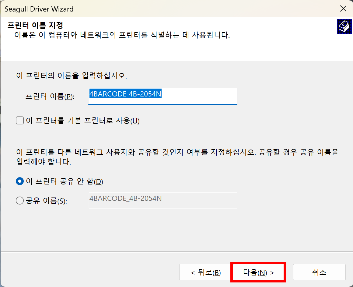 6. 프린터 이름 설정 (원하시는 이름으로 변경 가능합니다.)