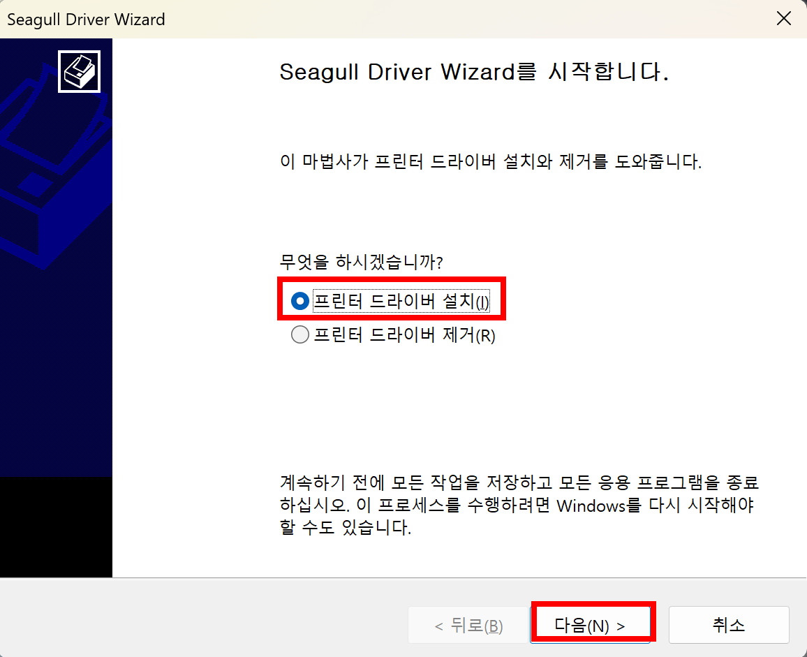 3. 드라이버 압축 해제 후 드라이버 마법사 실행