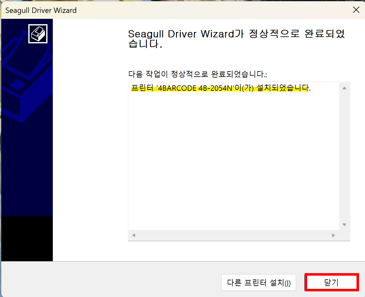 8. 프린터 드라이버가 정상적으로 완료 되었습니다.