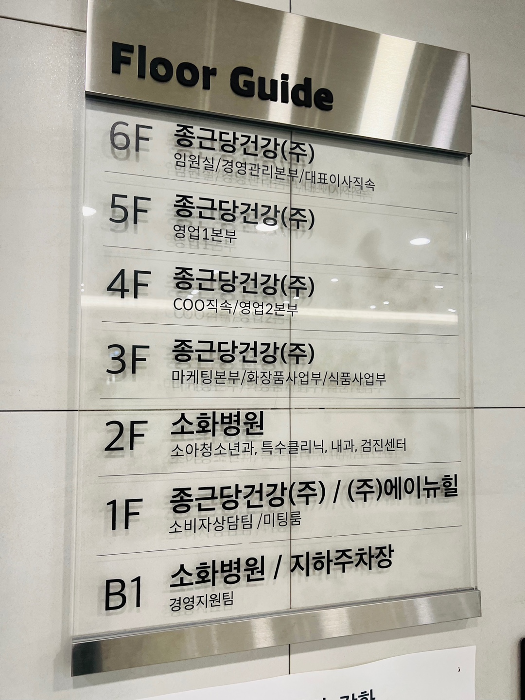 종근당 건물에 지상 2층만 소화병원이네요!!